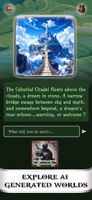 To enhance the visual appeal of your text adventures, we integrate high-quality, AI-generated imagery for each AI story. These visuals transform text-based scenarios into vivid, immersive realities. The AI story generator, equipped with GPT and AI chat technology, excels at creating visuals that complement the essence of AI fantasy text RPGs, ensuring a rich, engaging dungeon roleplay session.