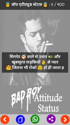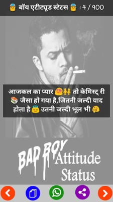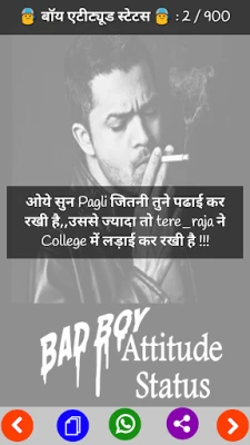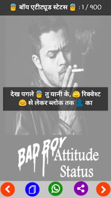 Bad Boy Attitude Status App Is 100% offline, so no need of internet connection. Bad Boy Attitude Status app Having Different Different Category for Shayari . Share via all social media like as whatsapp and fb This App having various different categories.