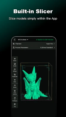 - Convert STL files to G-code effortlessly and preview sliced files within the app.