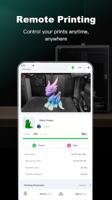 - Control and manage your 3D printer from anywhere using your mobile device.