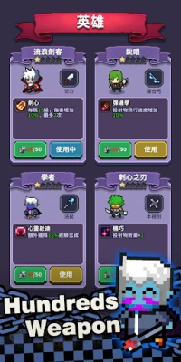 Game Features 🎉Full of feelings🎉 Pixel art style is retro. 🎉Exciting🎉 Fight against thousands of monsters at once. 🎉Quite easy🎉 Clear the map with only one hand. 🎉Fun to play🎉 A perfect fusion of roguelike and shooting gameplay. 🎉Collection🎉 Come to fill in the illustrations of weapon and hero.