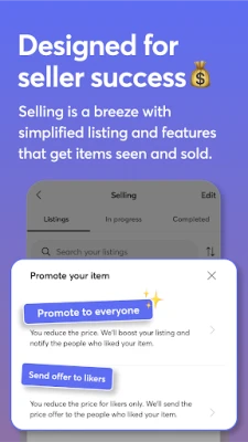 - Get your stuff seen and sold fast with millions of shoppers and tools like Promote and Offer to Likers