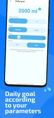 Application features: * Water requirement calculator * Reminders * Units (Metric and fl oz) * Statistics in graphs * Motivational awards * Useful tips about water