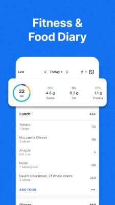 ■ Macro tracker lets you see carbs, fat, & protein breakdown—no need for a separate app! Set goals for macros, protein, sodium, fiber, and more