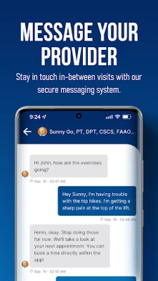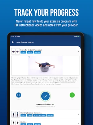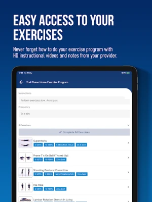 Using this app, you can access your personalized Home Exercise Program with HD Instructional videos. On the 'Messages' tab, you can securely communicate with your Rehab Specialists provider. As you complete your exercises, we'll give you trophies and medals to celebrate your progress!