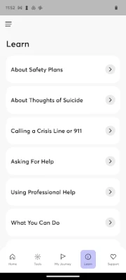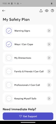 Safety Plan is here to help you make a plan for dealing with thoughts of suicide and self-harm. The app will walk you through filling out the 6 steps of a safety plan, share your safety plan with your loved ones, and use your safety plan in a moment of crisis. The app also includes audio and interactive tools to help you calm down, information for you and your loved ones about safety plans and suicide, mood tracking, and ready access to crisis support.