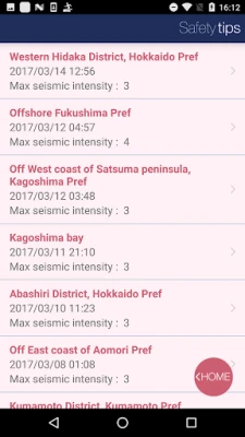 Information on past earthquakes. A maximum of ten records (seismic intensity level of 3 or higher.)