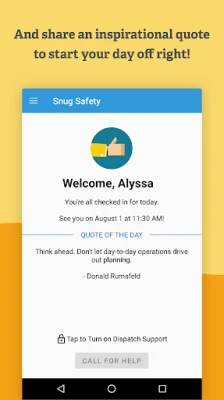 If you don't check in by your selected daily time, a Snug dispatcher will call to check on you. If you still don't respond, your emergency contacts will be alerted and then emergency services will be called for a wellness check.